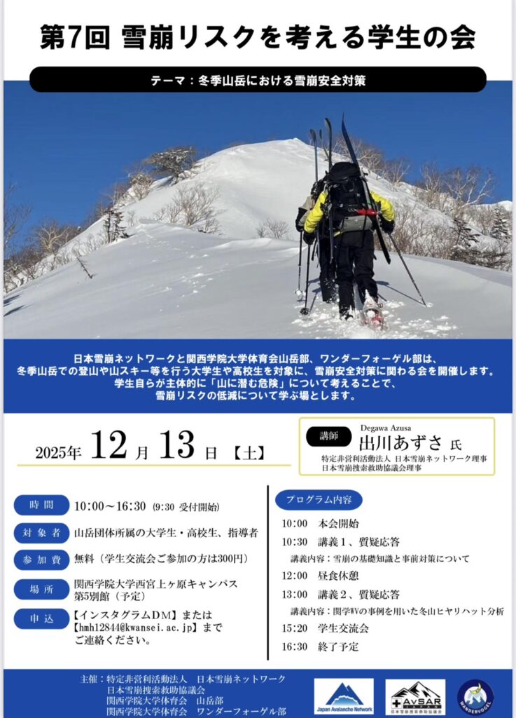 「第7回 雪崩リスクを考える学生の会」開催のお知らせ
